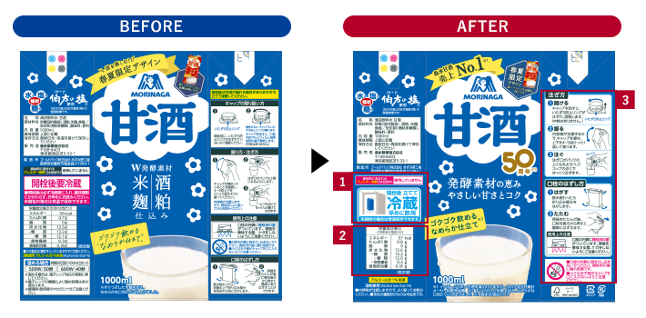 In addition to being in compliance with laws such as the Food Labeling Act, labeling on packaging provides information important for customers when selecting products. We devise ways to ensure that health-related information such as allergy information, nutritional information, and directions for consumption are clearly visible and easy to understand. We also work to raise customer convenience through such efforts as labeling individual packaging with allergen information and cross-contamination statements (a warning for possible contamination arising from production at shared facilities).