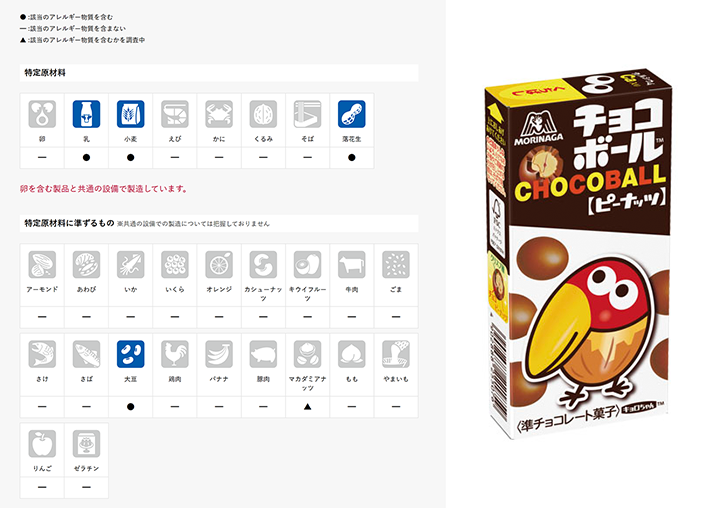 We provide not only legible and easy-to-understand allergen data on product packages but a list of allergens on our website to help customers feel safe when selecting our products. For the sake of customers with allergies, we will continue to carry out strict quality control over specified raw materials and their equivalents as part of our sustained efforts to deliver safe products to our customers.