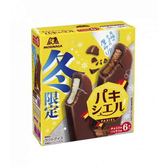 層状に入ったパリパリチョコの食感と、すっきりした味わいのバニラアイスとの一体感がおいしい、家族みんなが楽しめる食べきりサイズのバニラバーです。
