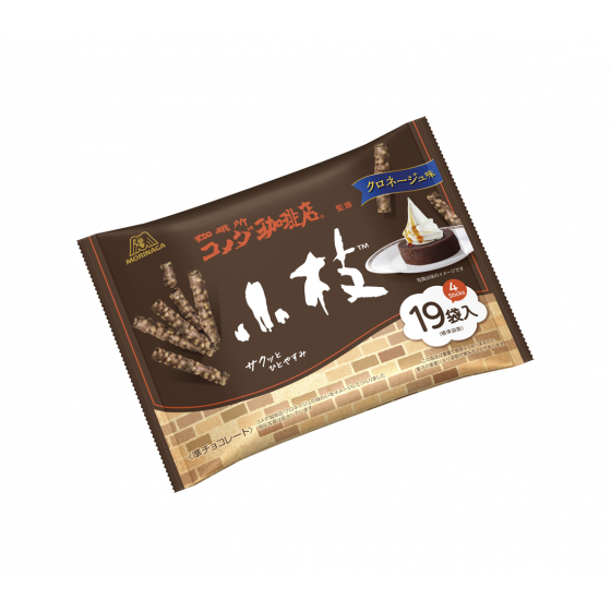 チョコレートと焙煎アーモンド、2種類のパフの絶妙な食感と味わいが楽しめる枝の形のチョコレートです。具材のサクサク感がアップしました。