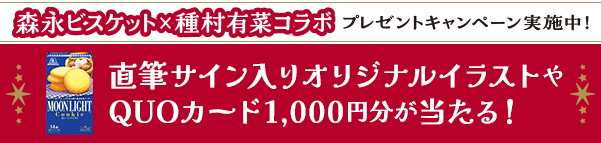 ■森永ビスケット×種村有菜コラボプレゼントキャンペーン森永ビスケットを購入したレシートで、種村有菜直筆サイン入りオリジナルイラストやQUOカード1,000円分が当たる!