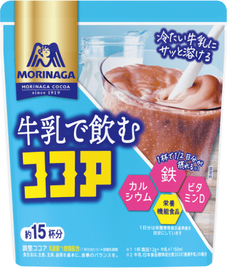 カルシウム・鉄・ビタミンDをおいしく手軽に摂取。冷たい牛乳にもサッと溶ける。 (栄養機能食品)