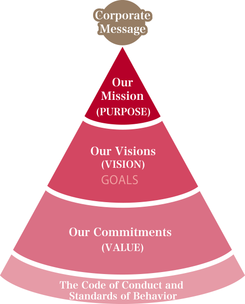 The Morinaga Group’s Corporate Philosophy is composed of Our Mission, Our Visions, and Our Commitments. Our Mission states how the Group will contribute to society, and Our Visions comprise the five visions that we will pursue toward the future.