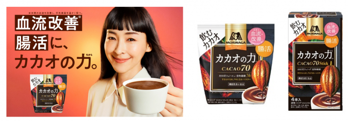 「カカオの力<CACAO70>」は、「血流改善(末梢の血流を改善し手先表面を温かく保つ)」と「腸活(カカオリグニンが、便通が気になる方のおなかの調子を整える)」のダブルヘルスクレームの『機能性表示食品』としてリニューアルして、2022年8月23日(火)より発売中です。