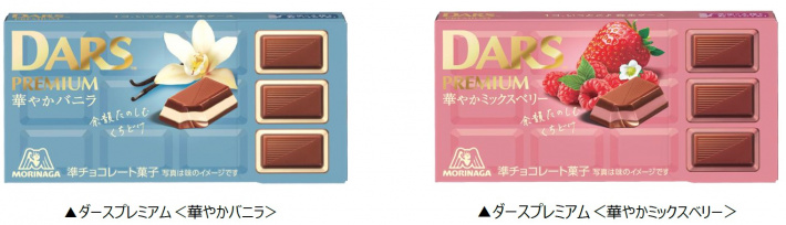 「ダースプレミアム<華やかバニラ>」は、やさしいミルクのコク深いチョコレートとバニラの余韻を感じる3層仕立てのプレミアム品質な「ダース」です。「ダースプレミアム<華やかミックスベリー>」は、やさしいミルクのコク深いチョコレートと、ミックスベリーの甘酸っぱさが相性抜群です。華やかな味わいと余韻が楽しめる、バレンタイン時期にぴったりな商品の発売で、お客様に笑顔をお届けしてまいります。