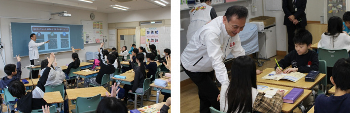 当社は「食育」活動の一環として、ミルクキャラメルを題材に工業生産についての小学校5~6年生を対象とした「森永製菓のキャラメル教室」や、中高生を対象とした「森永製菓のキャリア授業」などの出張授業を行ってきました。昨年度から、新しい出張授業プログラムとして、森永製菓が2008年より行っている、商品の売上の一部を使ってカカオの国の子どもたちを支援する活動「1チョコ for 1スマイル」を題材とし、「未来ラーニング~チョコレートでSDGsを学ぶ~」を実施しており、参加者数は2025年度までに累計13,700名に達する見込みです。