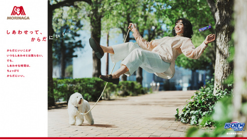 本CMでは、「ハイチュウ」を食べることで生まれる幸福感を、おいしさで体が浮くようなしあわせな時間として描くことで、当社が考える「心の健康」まで含めた「ウェルネス」を追求する姿勢をユーモラスに表現しています。