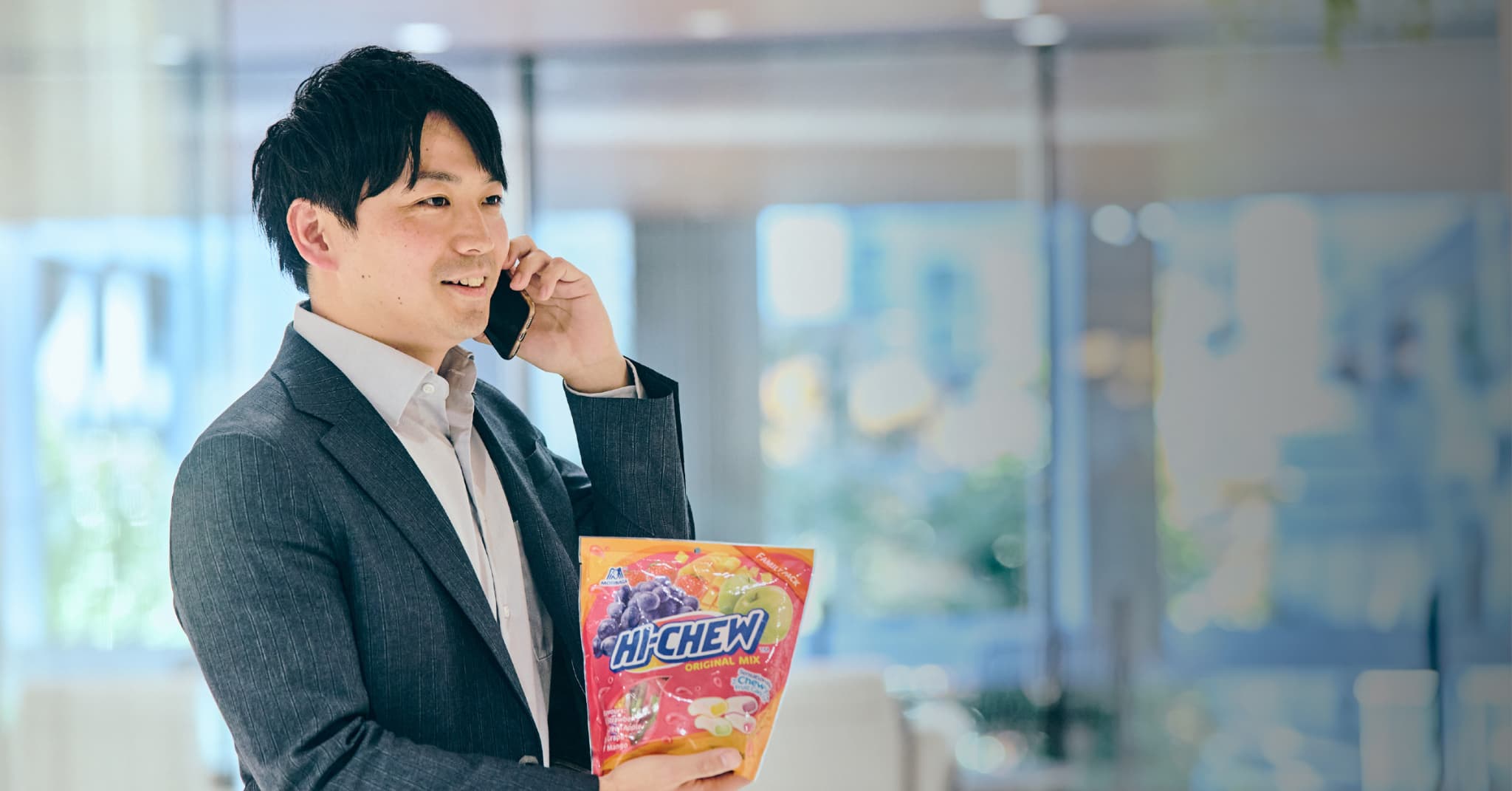 私が所属する海外事業本部は、「森永製菓の商品を世界中に届けて、世界の人々の笑顔をつくる」という使命のもと、HI-CHEWを軸としたグローバル市場の開拓や、現地法人のサポートを行っています。日本では多くの方に知られている森永製菓ですが、グローバル市場で勝負するには、商品として優れているだけでなく、その国の法規制への適合や適切な販売価格の設定、現地代理店との交渉など様々な工程をクリアする必要があります。また、私たちが目指すのは「日本のお菓子ではなく、現地のお菓子として根付くこと」です。どのように受け入れられるのかが予測し辛い海外を舞台に、現地のお菓子メーカーを競合相手として売上を作っていく、非常にチャレンジングな部門だといえます。