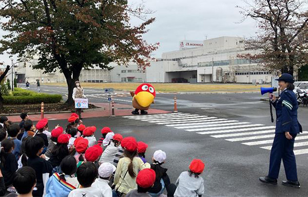 チョコボールを製造する小山工場にて、栃木県小山警察署が「チョコボール」のキャラクターである「キョロちゃん」を一日警察署長に委嘱し、キョロちゃんは大きな目で左右の安全確認を呼びかけました。小山工場にて交通安全パレード出発式及び一日警察署長委嘱状交付式を行った後に、道の駅思川まで移動し、来訪者へ交通安全を呼びかけました。また、ハイチュウを製造する高崎森永(株)は、高崎市役所前で行われた「春の交通安全運動」に参加しました。市内の小学生が1日警察所長となり、「交通事故にハイ・チュウ意!」のメッセージとともに、啓発活動を行いました。