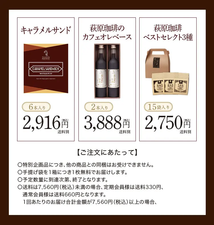※通常会員様は1回あたりのお届け合計金額が7,560円以上で送料無料となります。