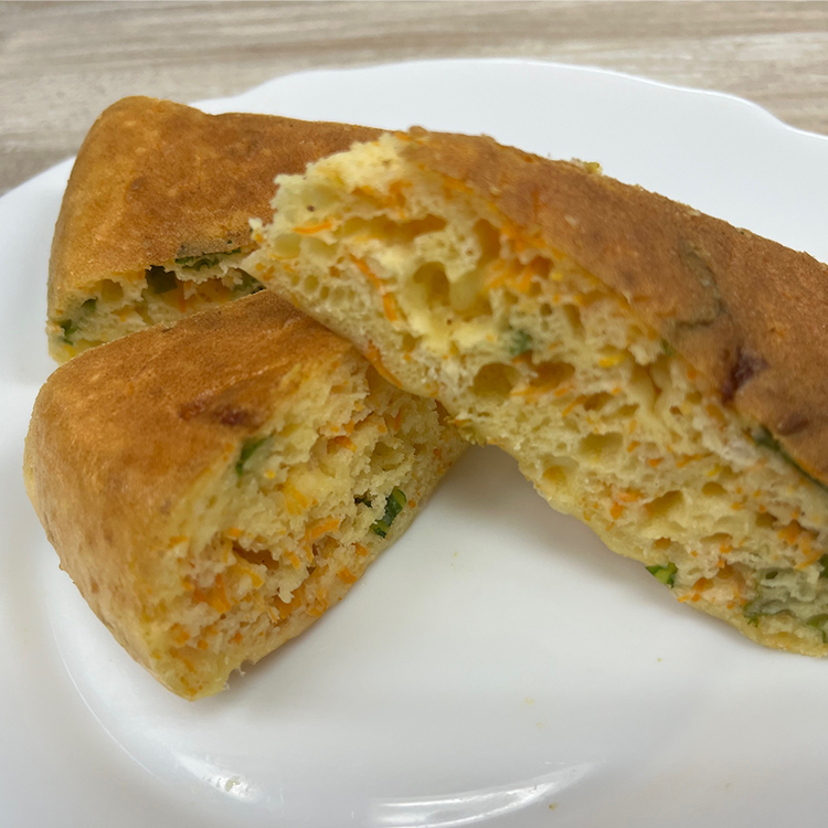 根菜のケークサレのレシピ 調理時間の目安:45分 【材料|3~4人分】 ホットケーキミックス 150g 卵 1個 豆乳 1本(125ml) お好みの根菜 100g (今回はカットニンジンを使ってみました) 溶かしバター 20g 【作り方】 【下準備】 野菜はお好みで食べやすい大きさに切りましょう(カット野菜の場合はそのままでOK)。 溶かしバターはレンジでもOK。耐熱容器にバターを入れ、600Wで30秒ほど加熱して溶かしておきます。 【手順】 手順1.材料を炊飯器に入れる ① 炊飯器のお釜にホットケーキミックス、卵、豆乳、用意した野菜、溶かしバターをすべて入れます。 ② しゃもじやゴムベラでしっかり、粉っぽさがなくなるまで混ぜ合わせます。 ※炊飯器のお釜の内側を傷つけないようご注意を。 手順2.炊飯スタート! ③ 炊飯器を「炊飯モード」にセットして、スタートボタンを押します。 ④ 炊き上がりの目安は約40~50分(お使いの炊飯器によって前後します)。 炊き上がったら竹串を中央に刺し、生地がついてこなければOK。 ⑤ もし生地がついてきた場合は、追加で5~10分ずつ再度炊飯してください。 手順3.仕上げ&型から出す ⑥ 炊飯器のフタを開けて、10分ほど蒸らします。 ⑦ 内釜の縁にそっとナイフを入れて、ケークサレを取り出します。 逆さにしてお皿にトンッと出すと、きれいな丸い焼き色のケークサレが完成です。 ★食べ方・アレンジいろいろ 朝ごはんやブランチには、ケークサレを厚めにカットしてサラダやスープと一緒に。 チーズやベーコンを加えるとさらにおかず感UP! お弁当のおかずやおやつタイムにも最適。冷めても美味しくいただけます。 色々な野菜を入れると断面がカラフルになり、食卓がパッと華やかに。 ★おすすめポイント 豆乳でヘルシー、さらにホットケーキミックスを使えば計量も簡単で、失敗知らずです。 ★炊飯器1つで作れる! オーブン&型いらず。ボウルで混ぜて→釜に入れて→スイッチひとつ。手間も後片付けも楽ちんです。 ★甘すぎない、だけどほんのり優しい味 ホットケーキミックスの特性でほんのり甘いですが、豆乳と野菜の力で食事にも合う絶妙バランス。塩気のあるハムやチーズを加えればより「おかず度」UP。