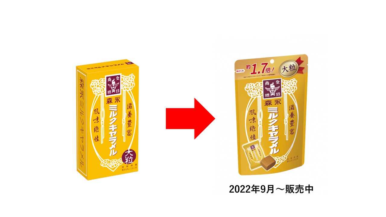 昔からある黄色い箱の「ミルクキャラメル」(12粒入り)と大粒や袋入りの「ミルクキャラメル」は、同じ味ですか?
