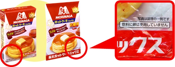 「卵を含む製品と共通の設備で製造しています」という表示をなくしてからも、「原材料には卵がありませんが、本当に卵は入っていないのですか」、「卵アレルギーの子どもに食べさせても大丈夫ですか」とのお問合せが依然として多いため、より目立つようにパッケージ表面に表示をいれました。
