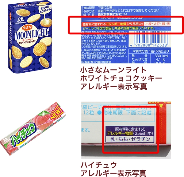 一部の製品につきましては2009年より行っておりましたが、このたび全製品を対象に、アレルギー物質25品目の使用状況が一目で分かる表示にします。