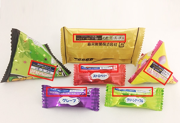 食物アレルギーをお持ちのお客様より、お菓子を開封したあと個別包装の状態でも アレルギー情報が分かるようにしてほしいとご要望を頂いておりました。 そこで、お客様により安心してお召し上がりいただけるように順次個別包装へのアレルギー物質、 コンタミネーション文の表示を進めています。(一部の商品をのぞく)