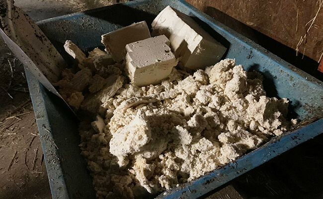 これは「おから」。牛たちの大好物なんですよ。