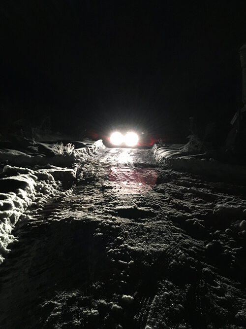 タクシーの運転手さんは先にお帰りいただいたので、暗闇で取り残されたスタッフ一同。寒いし暗いし、 心が折れそうになったその時、現れたヘッドランプの神々しさよ。