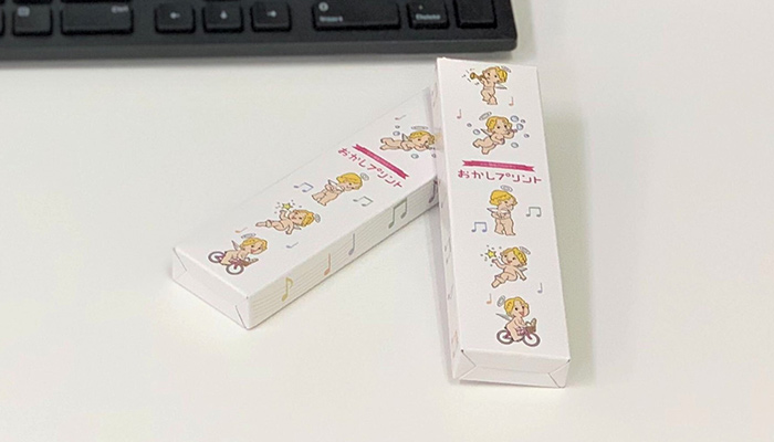 おかしプリントのハイチュウは箱入りになっていて、箱をデザインすることができます。