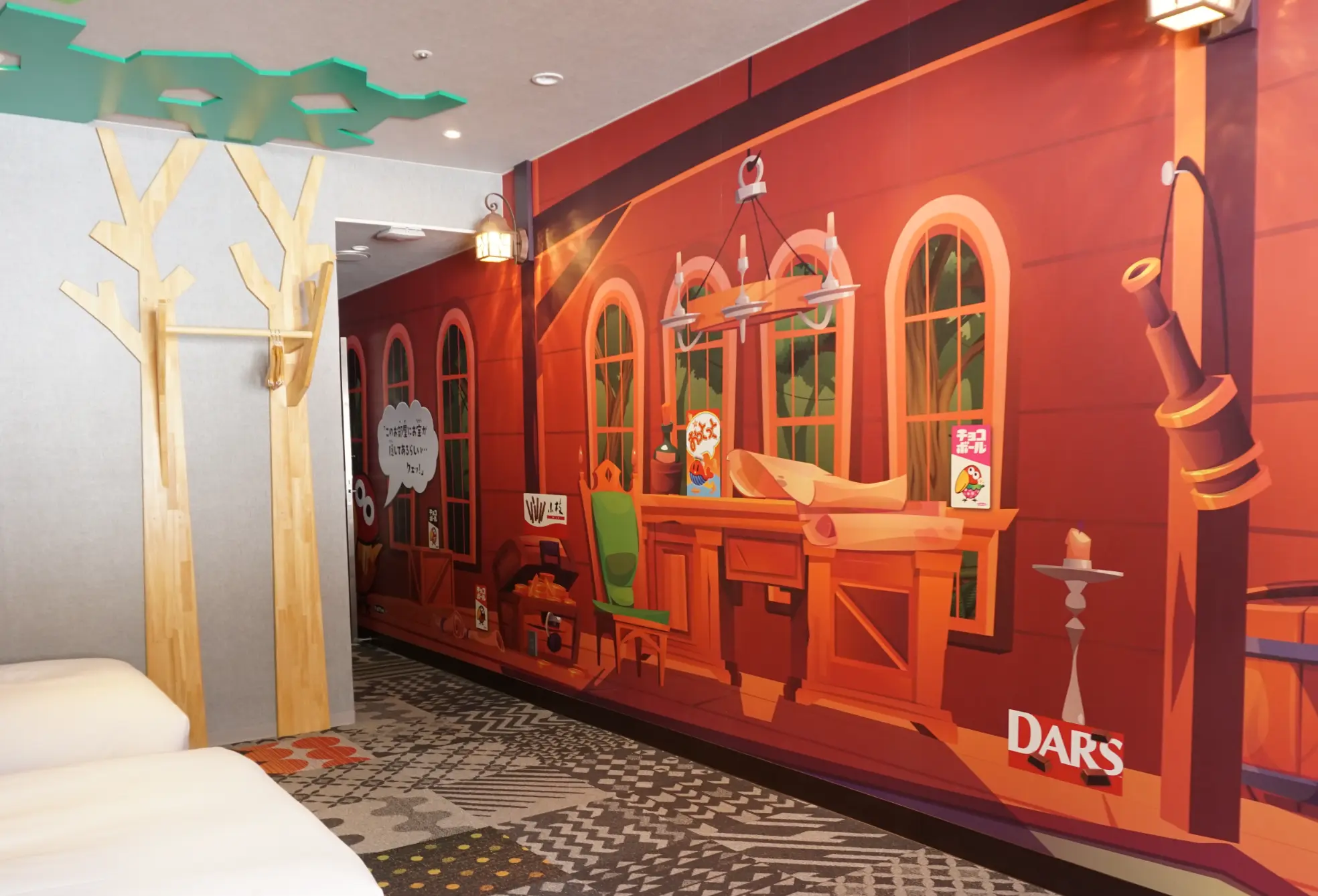 森永製菓のお菓子やキャラクターを使ったコラボレーションルームで宿泊施設の魅力を向上し、差別化・話題化・単価UPをサポート