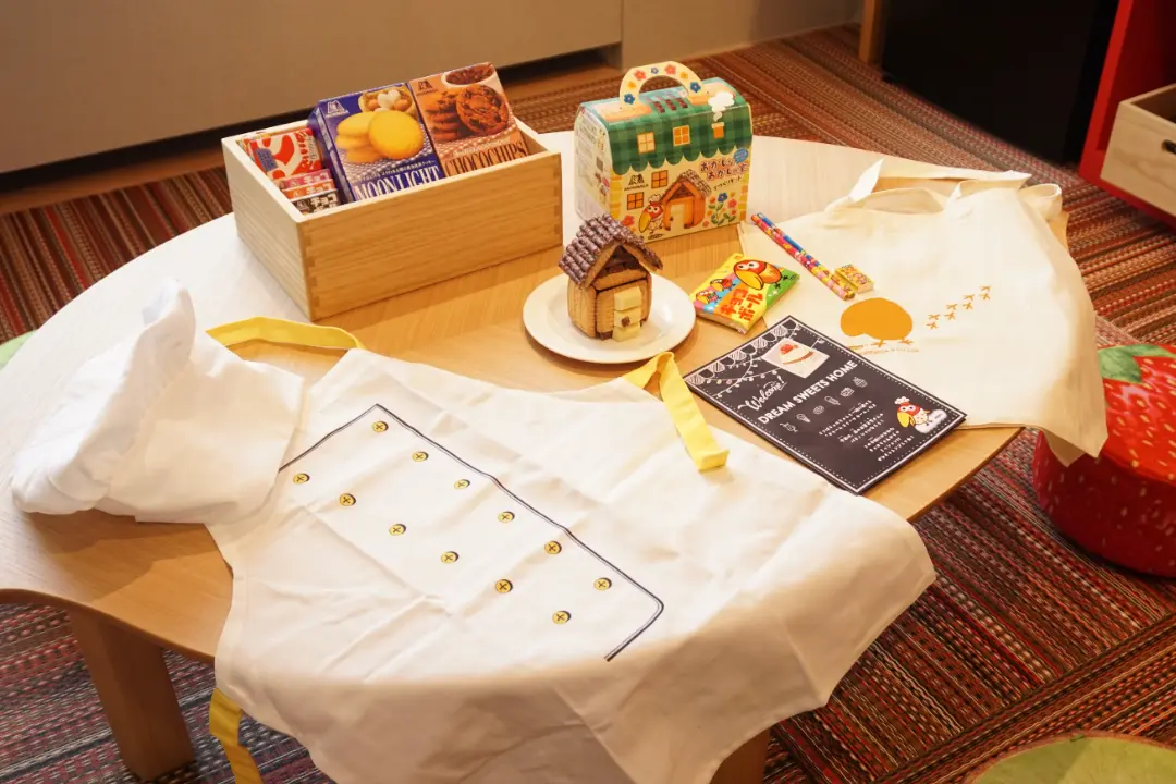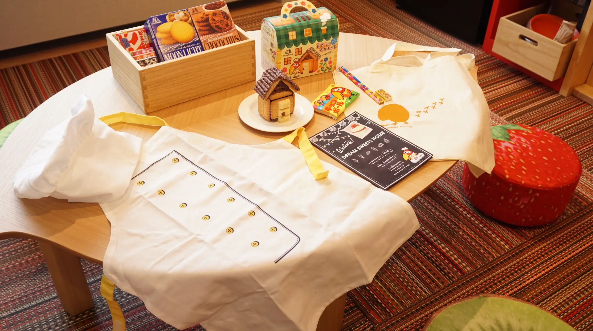 「たくさんの夢がつまったおかしの家・DREAM SWEETS HOME」を客室コンセプトに、キョロちゃんやお菓子を活用した客室デザイン、なりきり衣装のご提案、客室内で遊べるアクティビティの設計、オリジナル商品の開発などを行いました。