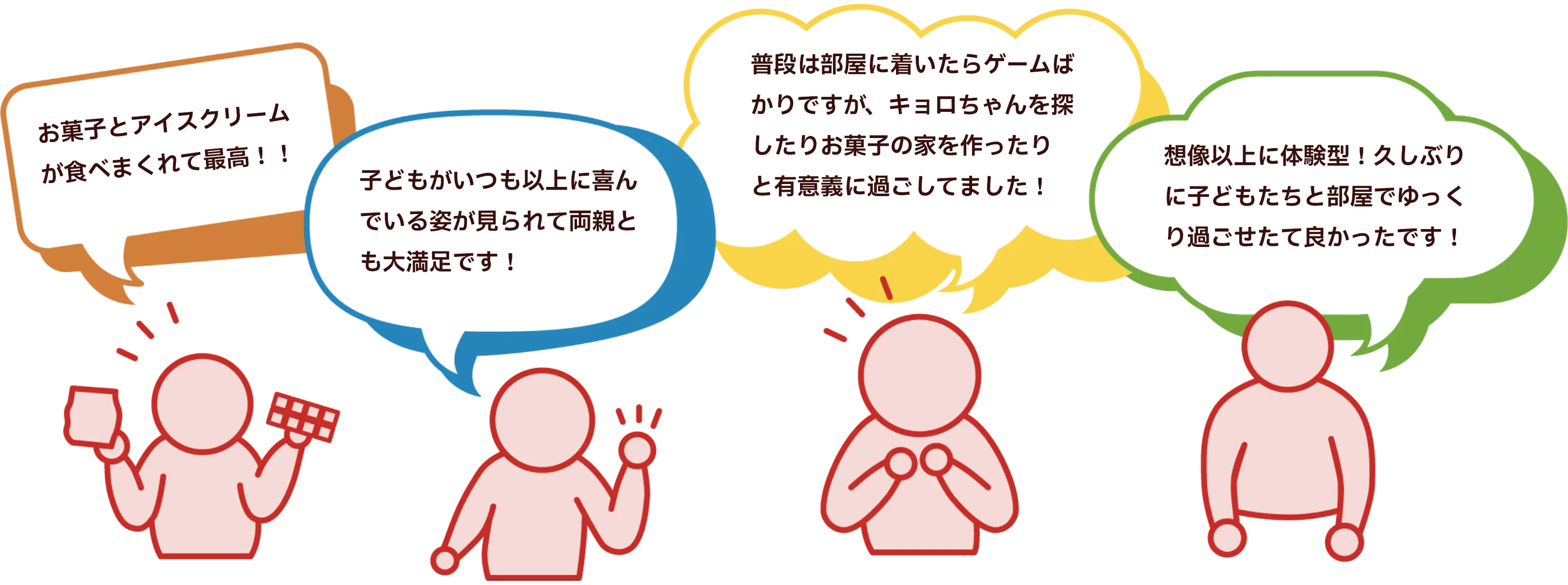客室に置かれたキョロちゃんからのお手紙(ミッションカード)に沿ってお菓子の家づくりや、客室内の宝探しができる設計に。大人も子どももワクワクする“仕掛け”を客室内に散りばめました。