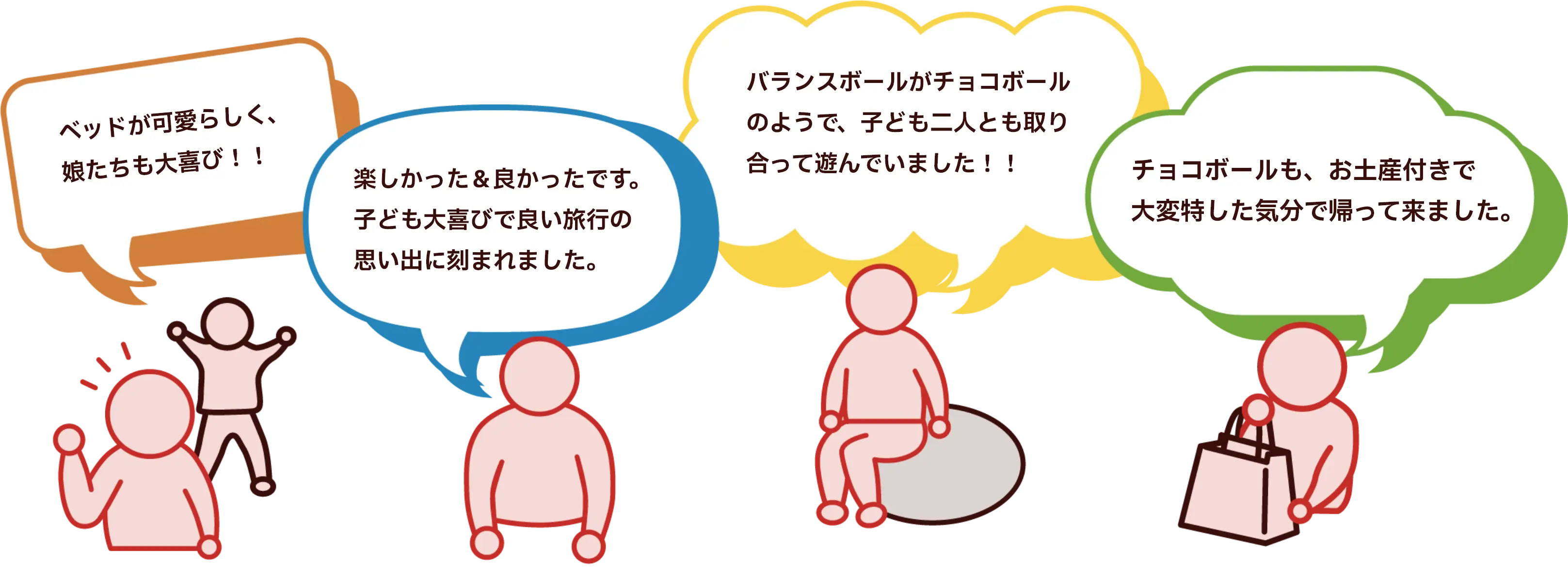 ビジネス需要が高い施設に、親子連れや友人同士での宿泊客層を獲得するための施策として、客室内にちょっとした“仕掛け”を施しました。「心踊る」を解き放つをパーパスに、ワクワクと感動を提供するHISホテルホールディングス様に沿った客室を目指し「感動体験」をコンセプトに、客室内の仕掛けの企画・設計と、デザイン支援を行いました。ホテルを巡って集めたくなるご当地キョロちゃんを使ったパンフレットや、20箱のチョコボールをお土産にするなど、細部にもワクワクの設計を入れ込みました。