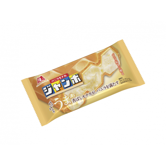 ジャンボなボリュームで小腹満たしにも、誰かと分けて食べるのにもぴったりなモナカアイスです。アイスクリーム規格のコクうまアイスと、ほんのり甘い洋菓子風もなかです。