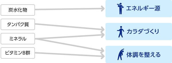 重要な栄養素であるビタミンB群、ミネラル類・炭水化物も意識しましょう。