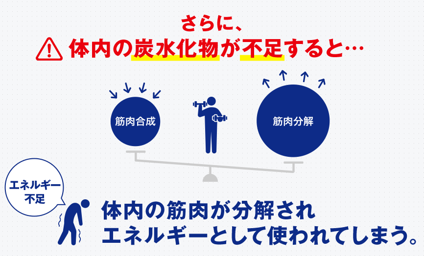 このような事態を避けるためにも、タンパク質と併せて炭水化物をしっかり補給することが大切。