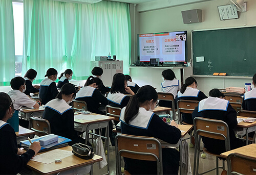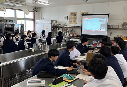森永製菓の事業内容や仕事、働き方などを森永製菓社員からご説明し、質疑応答などの直接コミュニケーションを通じて、生徒の皆さんが職業やキャリアを考え、働くことのイメージづくりをする機会となることを目指しています。